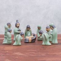 Celadon Ceramic Nativity Scene from Thailand 10 Piece 'Nativity of Love' Item ID: 2671799259