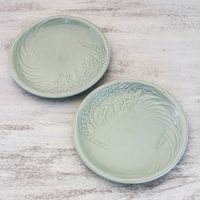 Celadon Ceramic Plates from Thailand Pair 'Thai Rice' Item ID: 2671798332