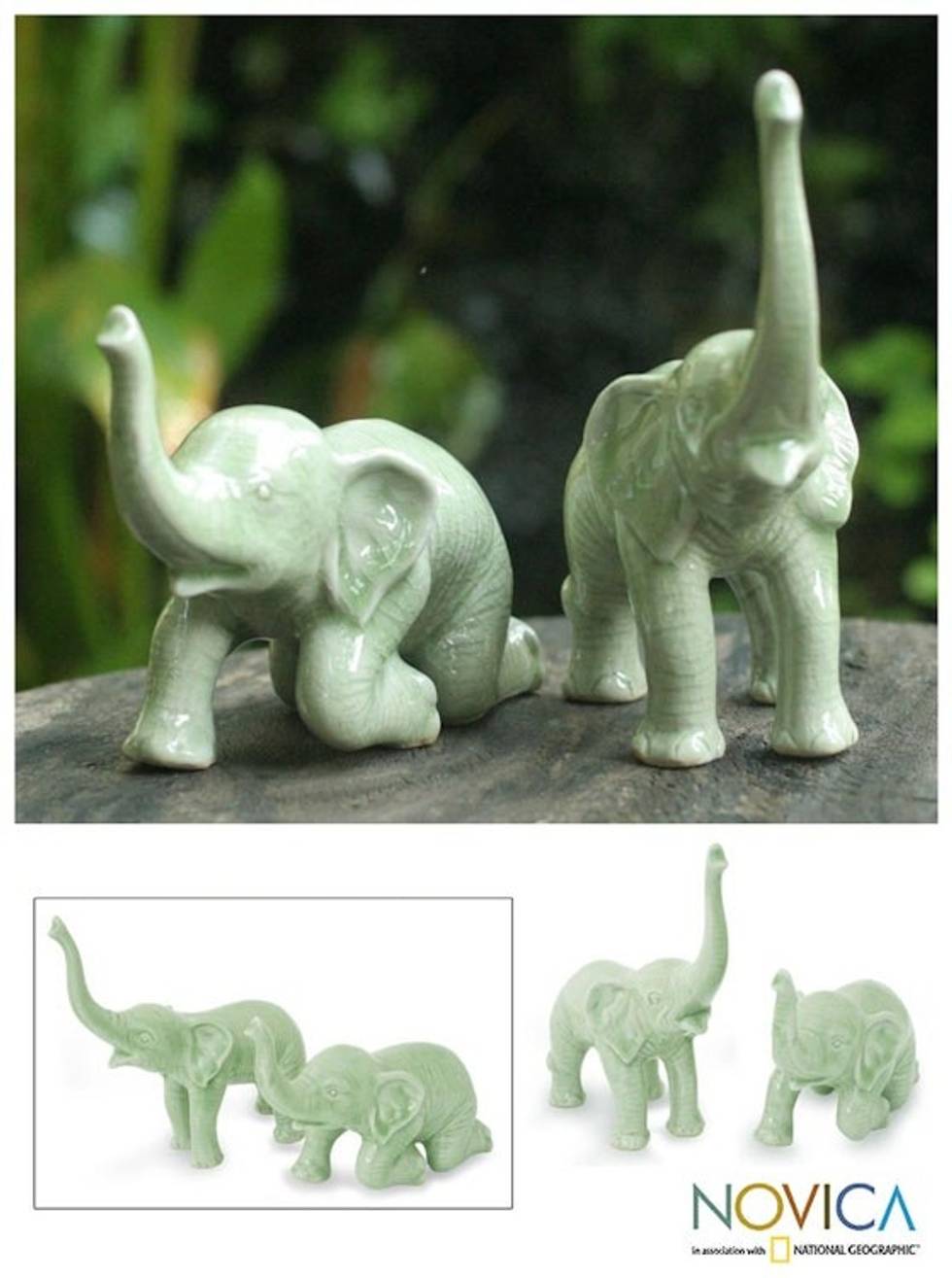 Celadon Ceramic Sculptures from Thailand 'Welcoming Elephants' Item ID: 2671802657