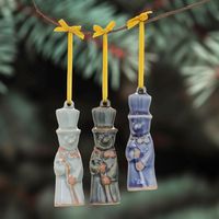 Celadon Ceramic Snowman Ornaments from Thailand Set of 3 'Delightful Snowmen' Item ID: 2671799592