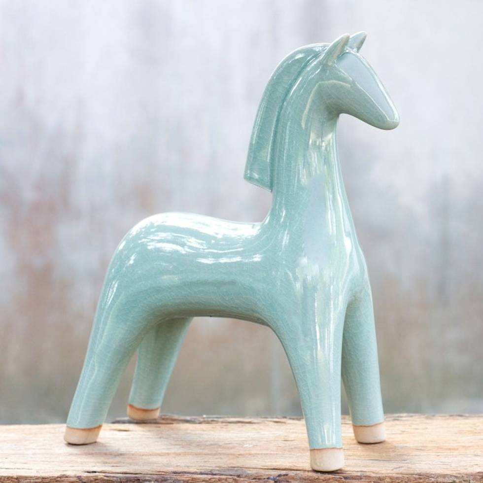 Celadon ceramic statuette 'Elegant Equine' Item ID: 2669892416