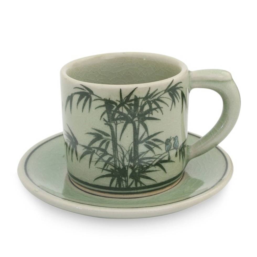 Celadon Espresso Cup and Saucer from Thailand 'Jade Bamboo' Item ID: 2671802487