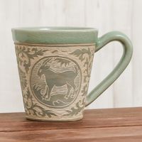 Celadon Glazed Ceramic Mug with Goat from Thailand 'Thai Zodiac Goat' Item ID: 2671801141