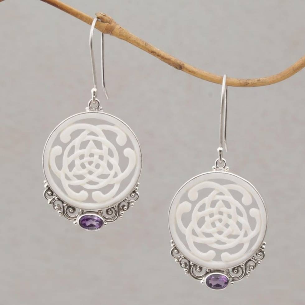 Celtic Motif Bone Earrings with Amethyst and Silver 'Realm of Light' Item ID: 2671734414
