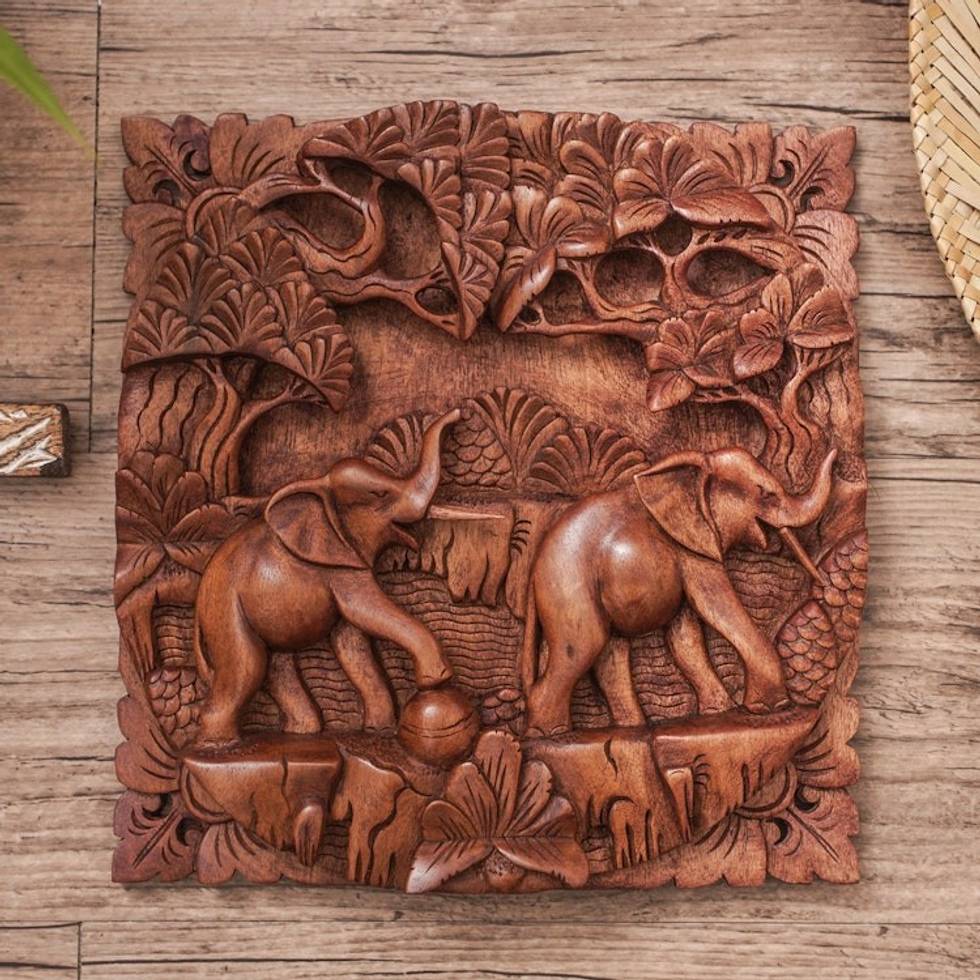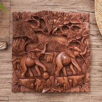 Cempaka Wood Elephant Relief Panel from Indonesia 'Elephant Brotherhood' Item ID: 2671736556