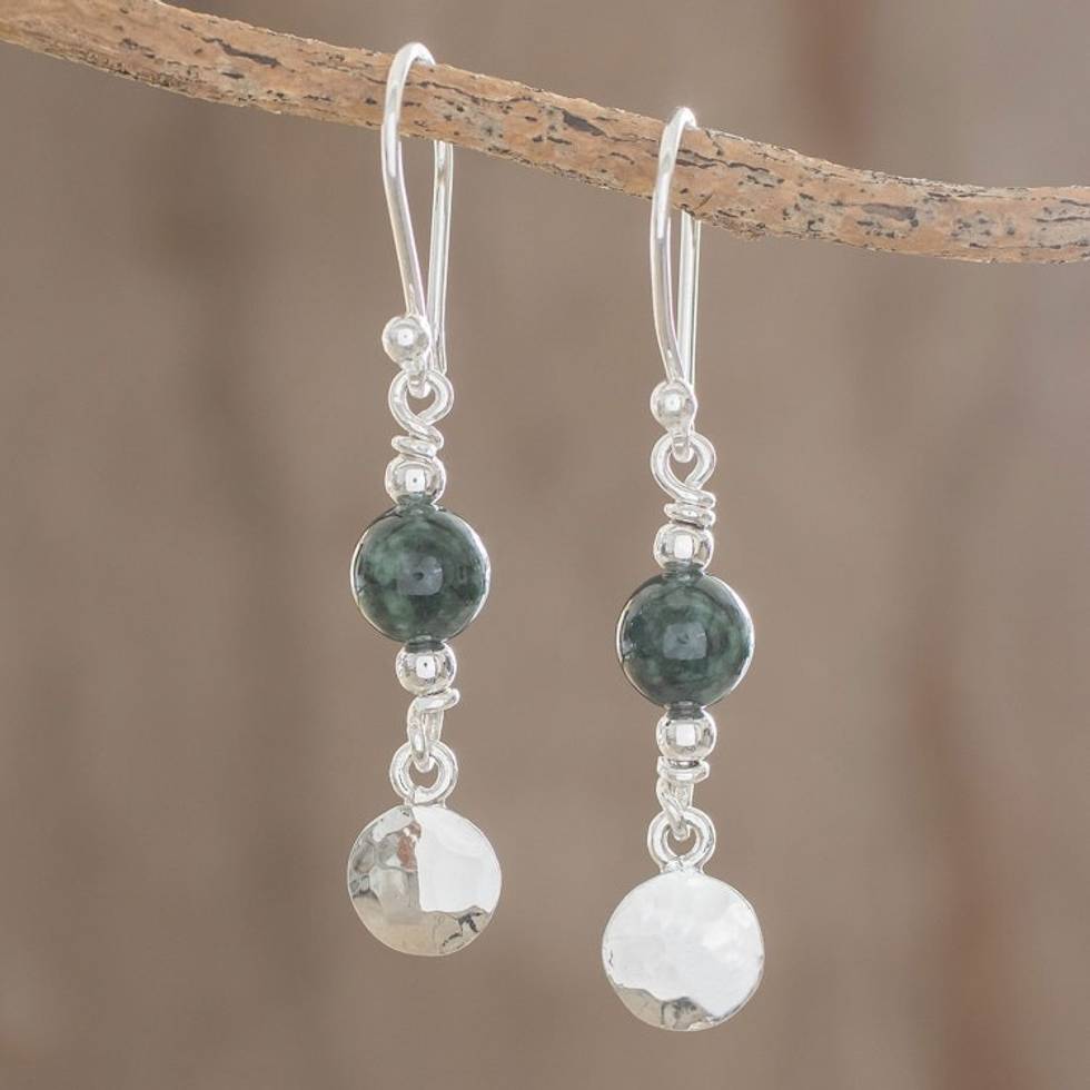 Central American Sterling Silver Jade Dangle Earrings 'Maya Aesthetic' Item ID: 2671779855
