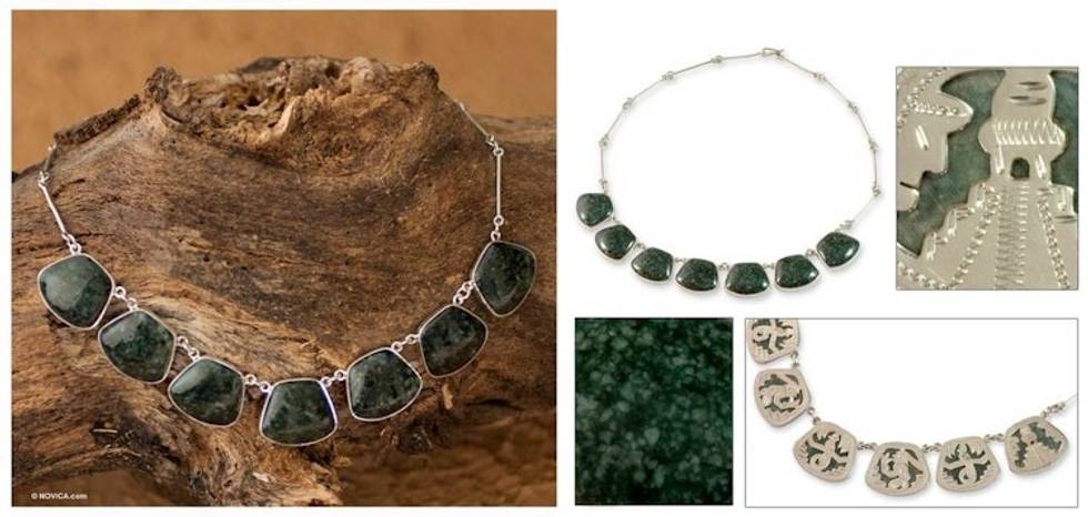 Central American Sterling Silver Jade Necklace 'Maya Legends' Item ID: 2671779496
