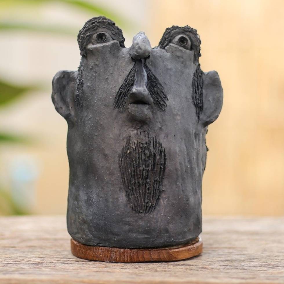 Ceramic and Teak Wood Statuette 'Good Man' Item ID: 2671800373