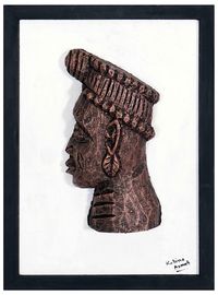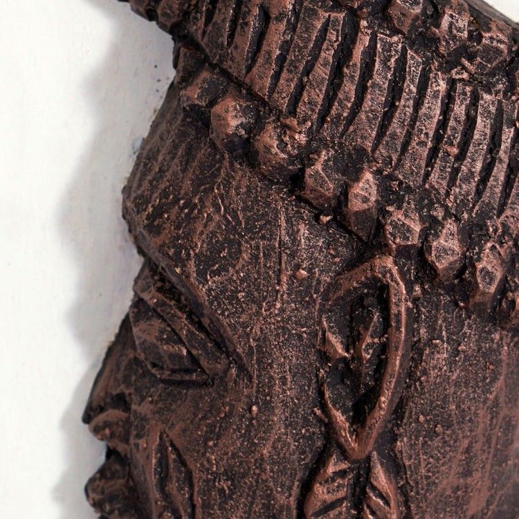 Ceramic and Wood Relief Wall Art of Nigerian Ife Head 'Bronze Head from Ife' Item ID: 2671805421