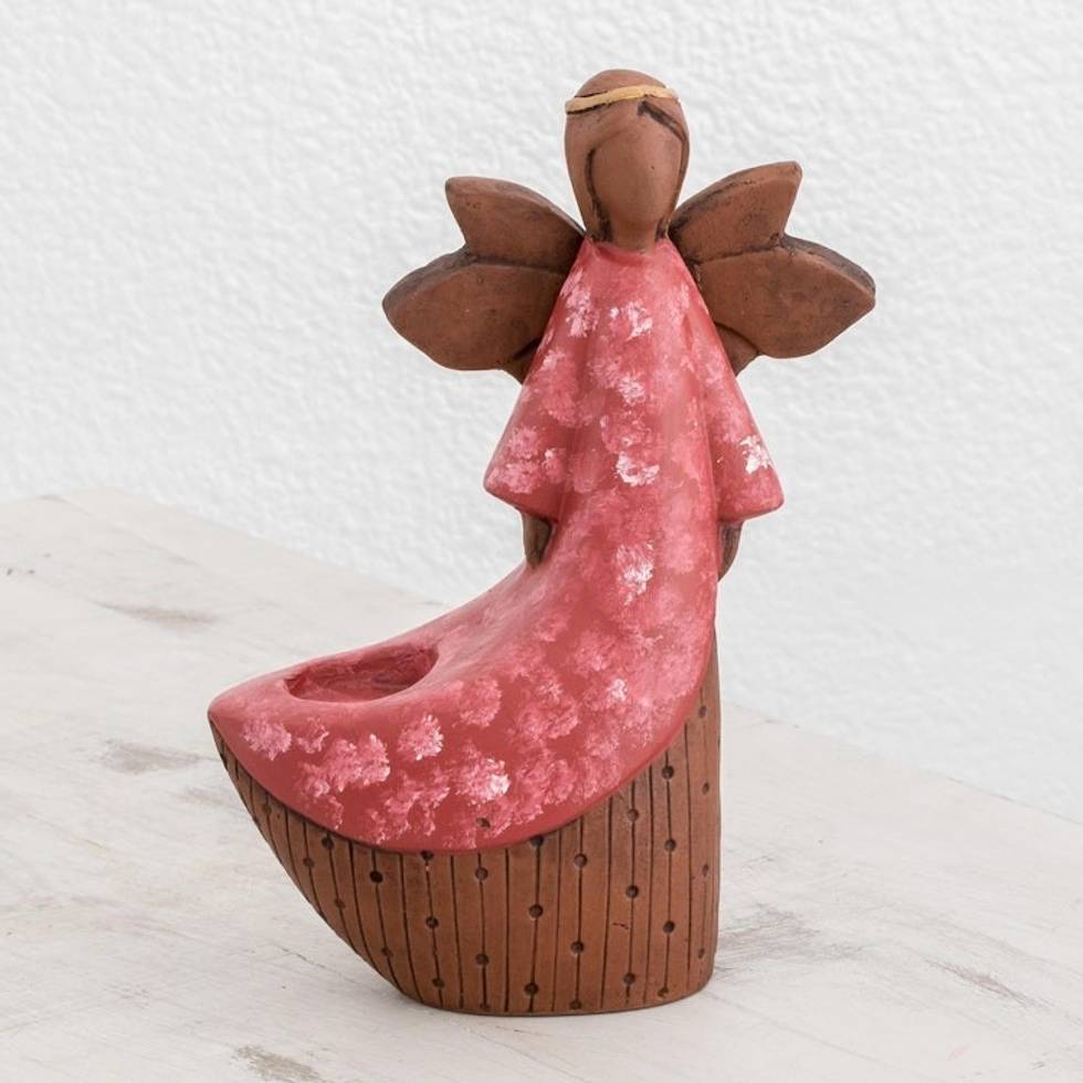 Ceramic Angel Tealight Candleholder from El Salvador 'Red Angel of Light' Item ID: 2671776971