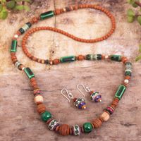 Ceramic Beaded Necklace and Earring Set in Earth Colors 'Green Mountains' Item ID: 2671695554