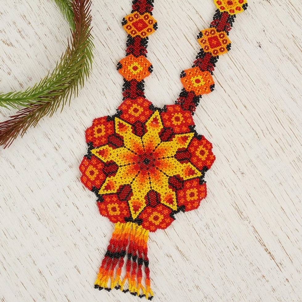 Ceramic Beaded Pendant Necklace in Fiery Hues from Mexico 'Fiery Geometry' Item ID: 2671808917