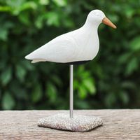 "Birds are the embodiment of enlightenment, hope and wisdom. Their cute appearance inspires many artists throughout the world, like designer Kantinan. Handcrafted in Thailand, this tender ceramic sculpture portrays a little bird with a mango wood beak for a unique touch. It also comes with an iron and ceramic stand for displaying the item in all its merry beauty."