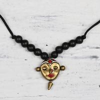Ceramic Black and Gold Serene Face Beaded Pendant Necklace 'Calm Lady' Item ID: 2671790254