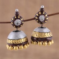 Ceramic Dangle Earrings in Gold and Silver from India 'Gleaming Sonata' Item ID: 2671790642