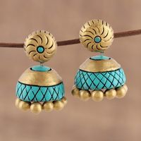 Ceramic Dangle Earrings in Gold and Turquoise from India 'Royal Glimmer' Item ID: 2671791367
