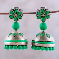 Ceramic Dangle Earrings with Green Floral Motifs from India 'Green Garden' Item ID: 2671792013