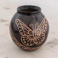 Ceramic Decorative Butterfly Vase in Black from Costa Rica 'Flying Beauty' Item ID: 2671779777