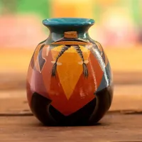 Ceramic Decorative Vase with Hand-Painted Andean Motifs 'Andean Braids in Blue' Item ID: 2671401409