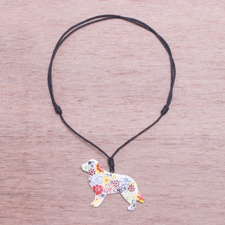 Ceramic Dog Pendant Necklace with Painted Floral Motifs 'Floral Dog' Item ID: 2671798723
