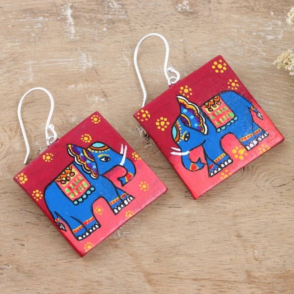 Ceramic Elephant-Motif Dangle Earrings 'Painted Elephant' Item ID: 2671788822
