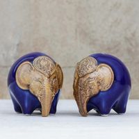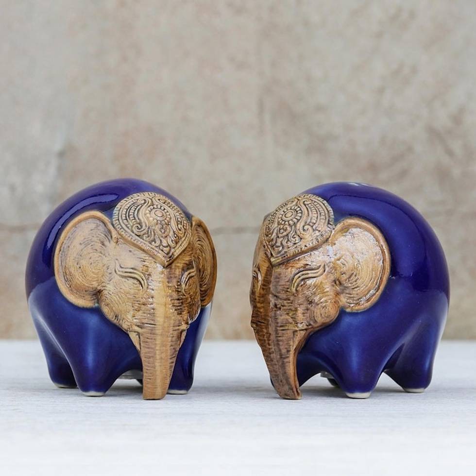 Ceramic Elephant Salt and Pepper Shakers in Blue Pair 'Round Elephants in Blue' Item ID: 2671798314