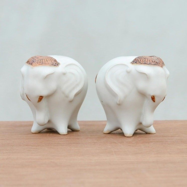 Ceramic Elephant Salt and Pepper Shakers in White Pair 'Calm Elephants in White' Item ID: 2671798970