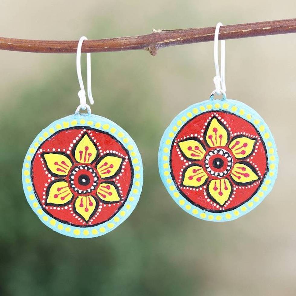 Ceramic Floral-Motif Dangle Earrings 'Rangoli' Item ID: 2676664045
