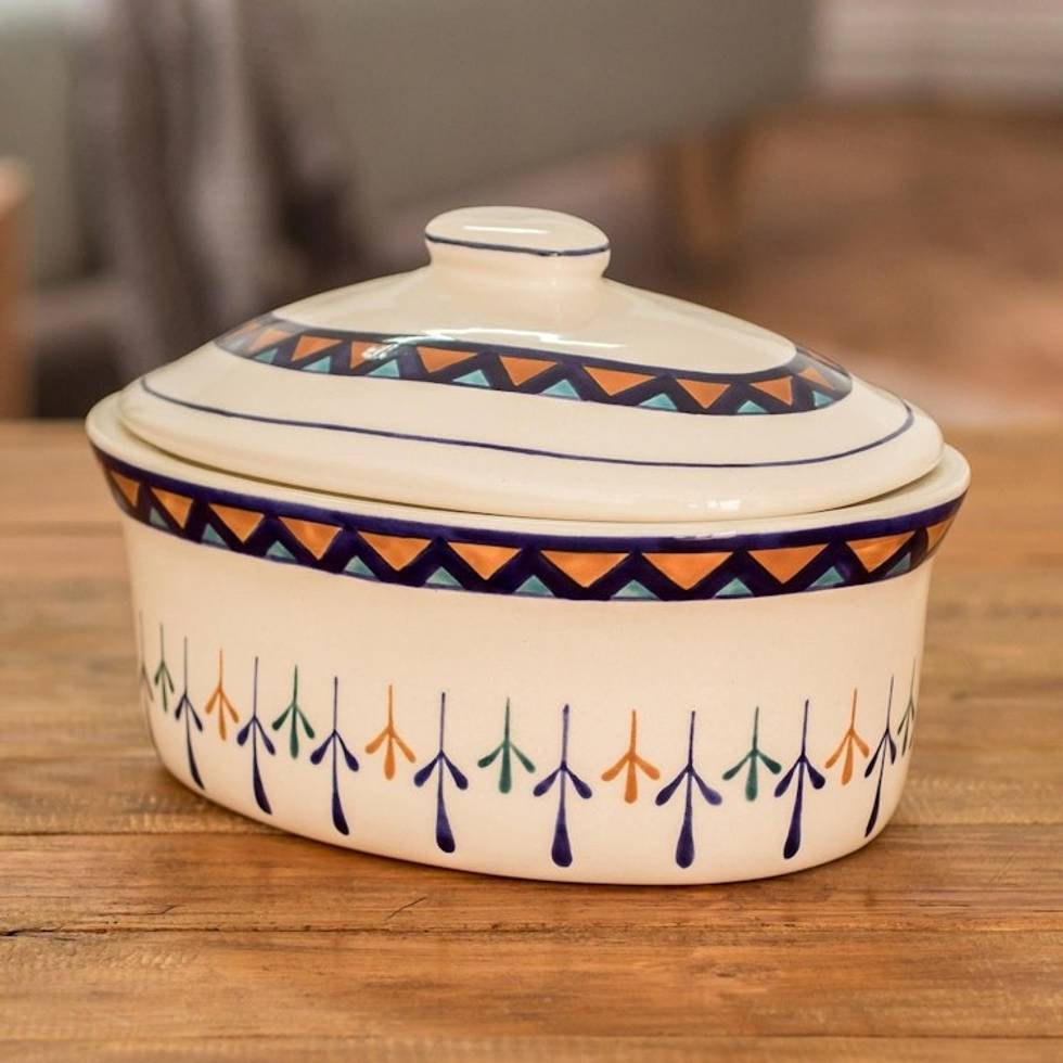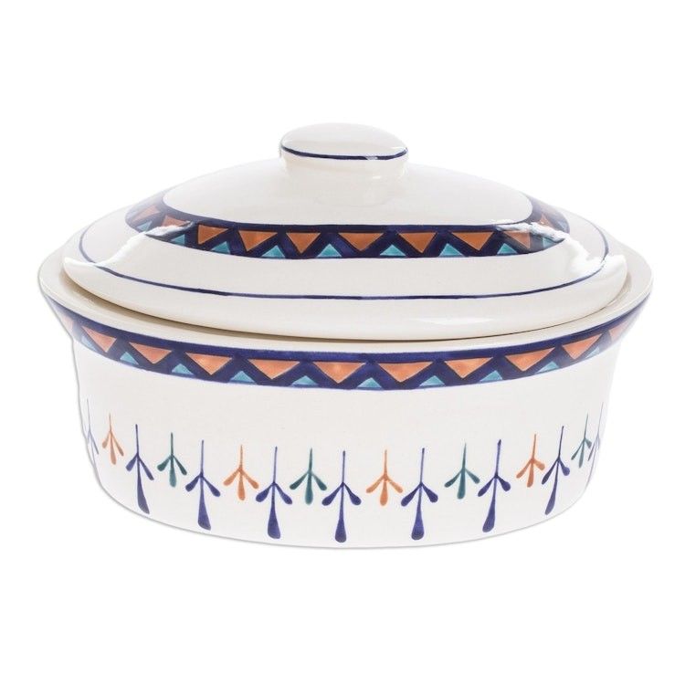 Ceramic Hand Painted Covered Oval Casserole Geometric Motif 'Antigua Breeze' Item ID: 2671772403