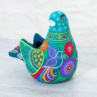 Ceramic Hand Painted Dove Sculpture Floral Motif from Mexico 'Teal Dove' Item ID: 2669927147