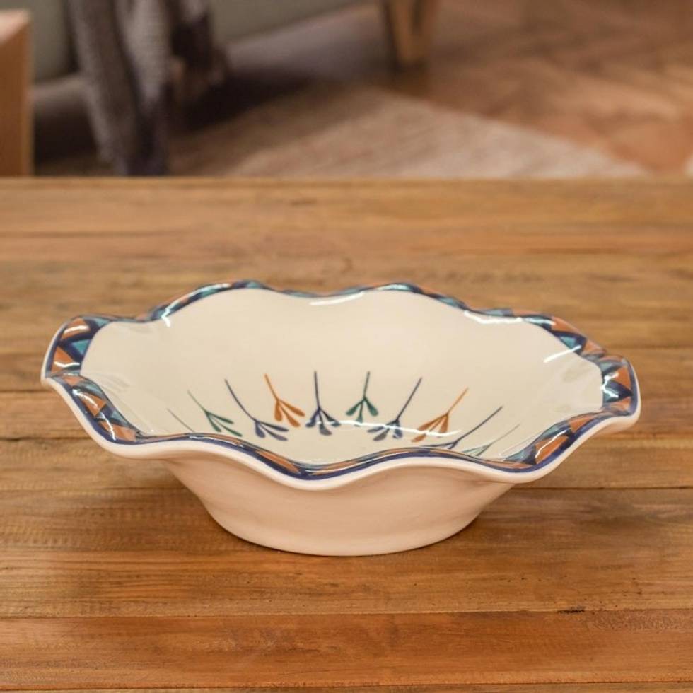Ceramic Hand-Painted Fruit Bowl with Geometric Design 'Antigua Breeze' Item ID: 2671772350