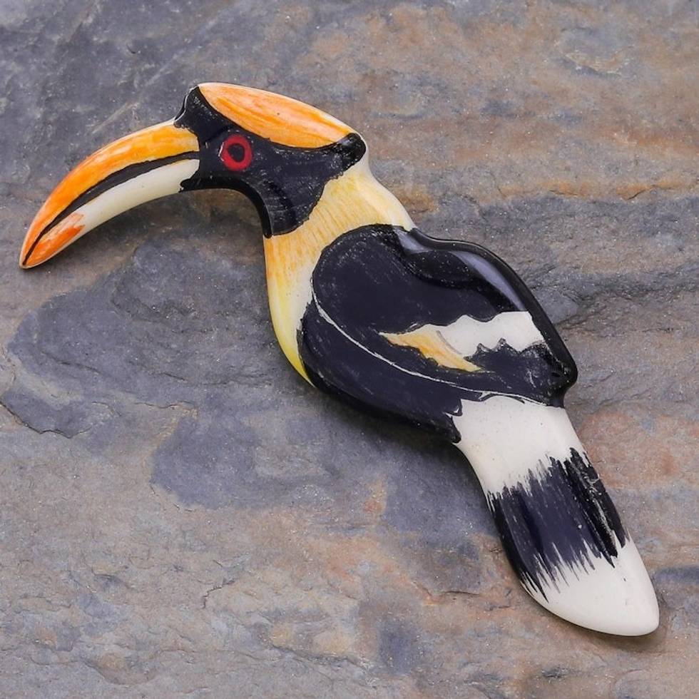 Ceramic Handpainted Hornbill Brooch Pin 'Hornbill Love' Item ID: 2671798618