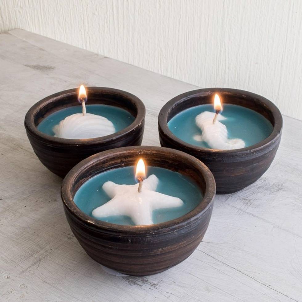 Ceramic Jar Filled Sealife Candle Set Set of 3 'Sea Breeze' Item ID: 2671776905