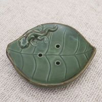 Ceramic Leaf Soap Dish with Gecko Decoration 'Gecko Home' Item ID: 2671744818