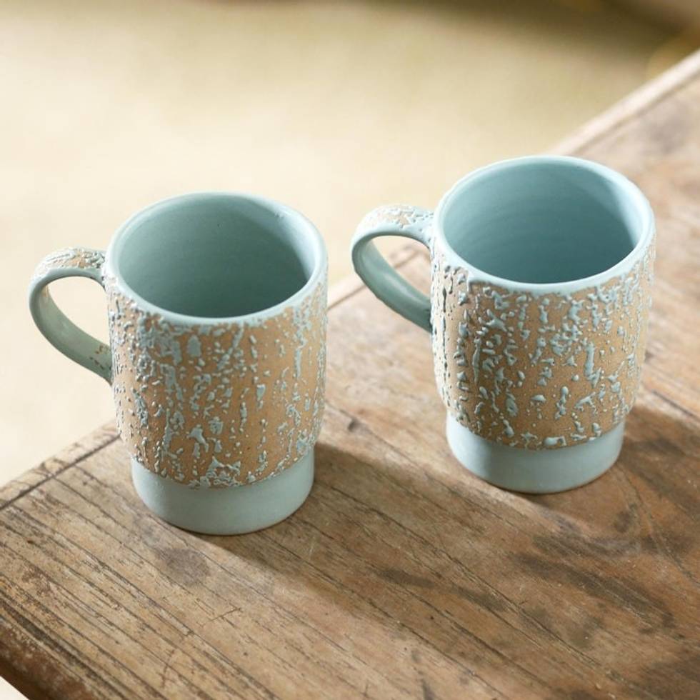 Ceramic Mugs with Rustic Finish Pair 'Sea Foam' Item ID: 2671747309