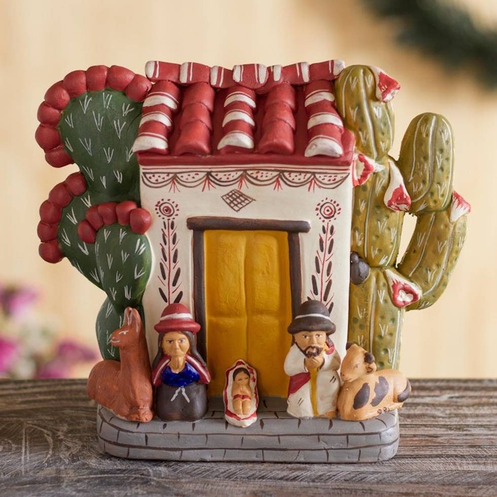 I was thrilled with this creche (nativity scene) It is beautifully made and it arrived safely, packaged in lovely paper with bow and a little tiny figure attached! Such attention to detail! I have several other creches from Peru in my collection, but this one is very special and different.