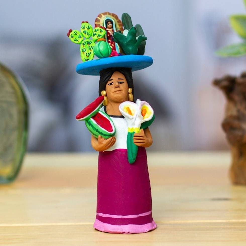 Ceramic Sculpture of Woman with Our Lady of Guadalupe Motif 'Woman with Virgin of Guadalupe' Item ID: 2671800631