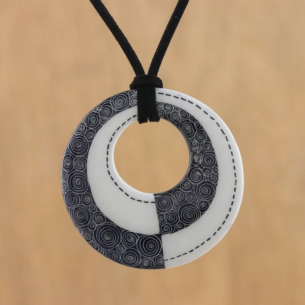 Ceramic Thai Handmade Black and White Pendant Necklace 'Infinite Duality' Item ID: 2671800759