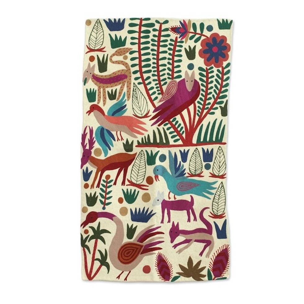 I didn't get a full notion from the pictures of how beautiful this was going to be. The colors are vibrant and stand out on the background. I doubt that I would put this on the floor though ? I've got animals and I'm always tracking in from the yard. There is a backing that will make it easy to turn into a wall hanging. For now I have it on the back of a chair. This was a gift, and, though I did pick it out myself, I think anybody who likes nature themes would be pleased with it
