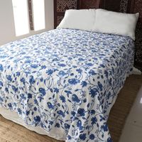 Chain-Stitched Cotton Floral-Motif Duvet FullQueen 'Valley of Blue Blossoms' Item ID: 2671787552
