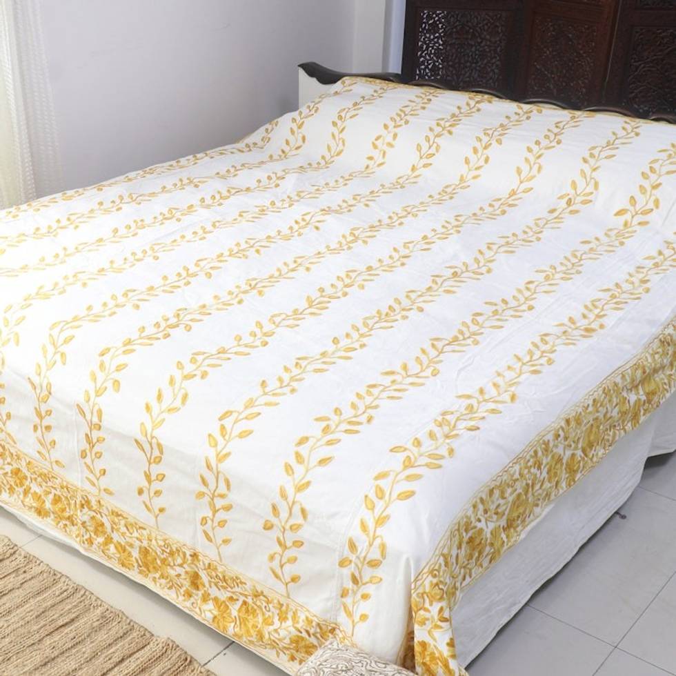 Chain-stitched Cotton Queen Duvet Cover Handmade in India 'Kashmir Vines' Item ID: 2671789048
