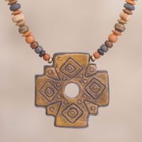 Chakana Cross Ceramic Beaded Pendant Necklace from Peru 'Sun Chakana' Item ID: 2669919654