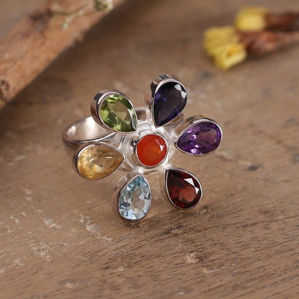 Chakra-Inspired Floral 4-Carat Multi-Gemstone Cocktail Ring 'Spiritual Petals' Item ID: 2671781177