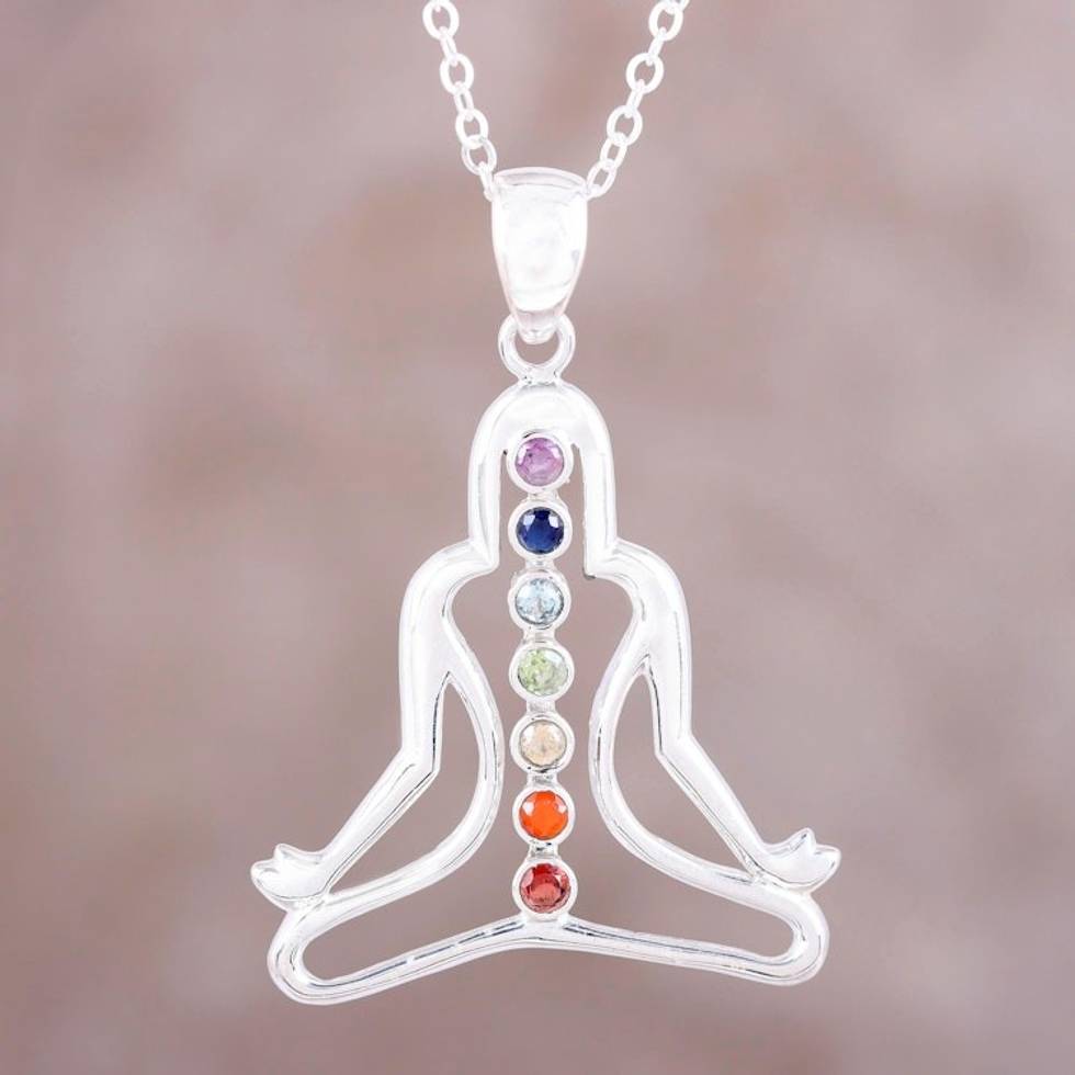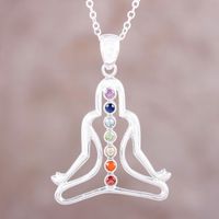 Chakra Silhouette Multi-Gemstone Pendant Necklace from India 'Radiant Chakra' Item ID: 2669944193