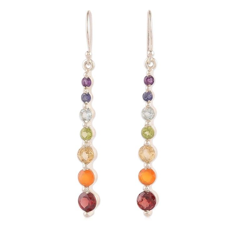 Chakra-Themed Colorful Multi-Gemstone Silver Earrings 'Sparkling Chakra' Item ID: 2671781062