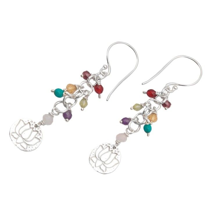 Chakra-Themed Multi-Gemstone Beaded Dangle Earrings 'Chakra of Life' Item ID: 2671764824