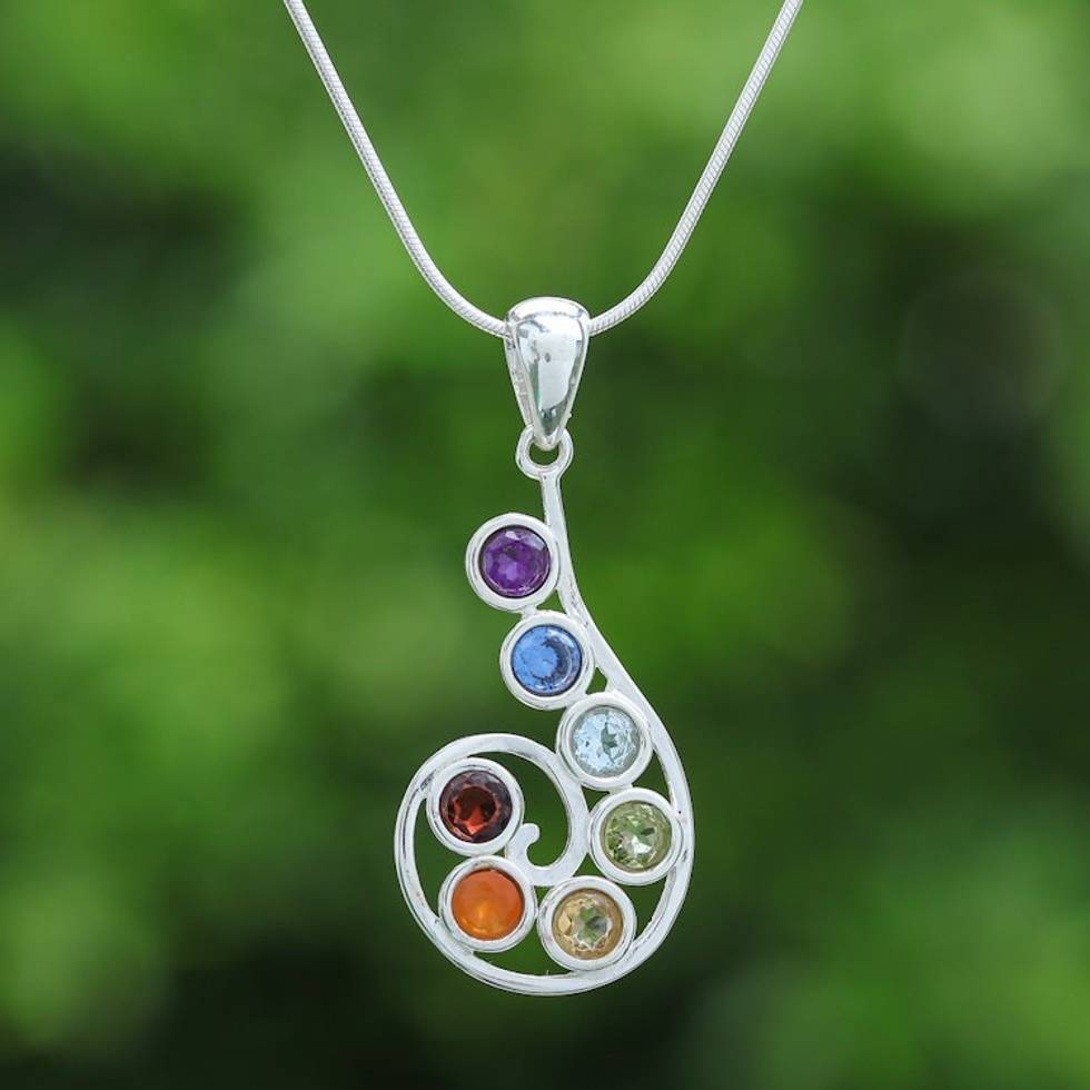Chakra-Themed Spiral Multi-Gemstone Pendant Necklace 'Seven Centers' Item ID: 2671646434