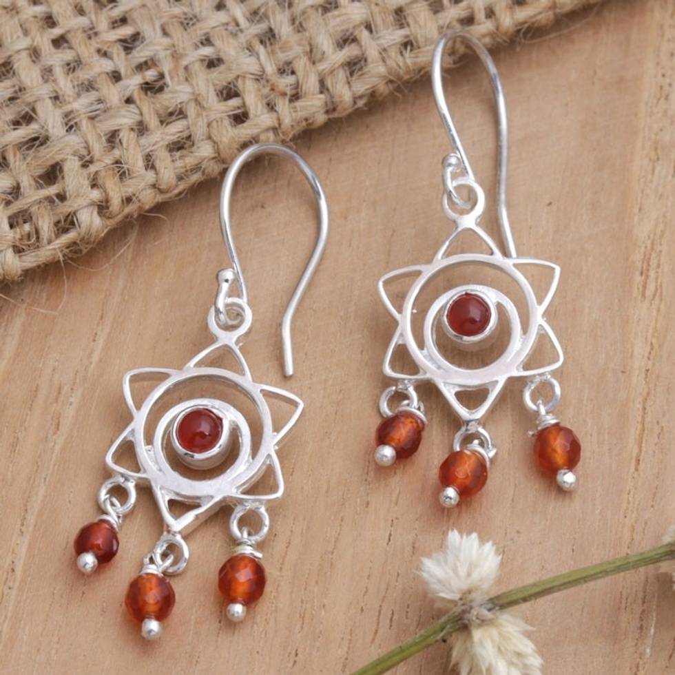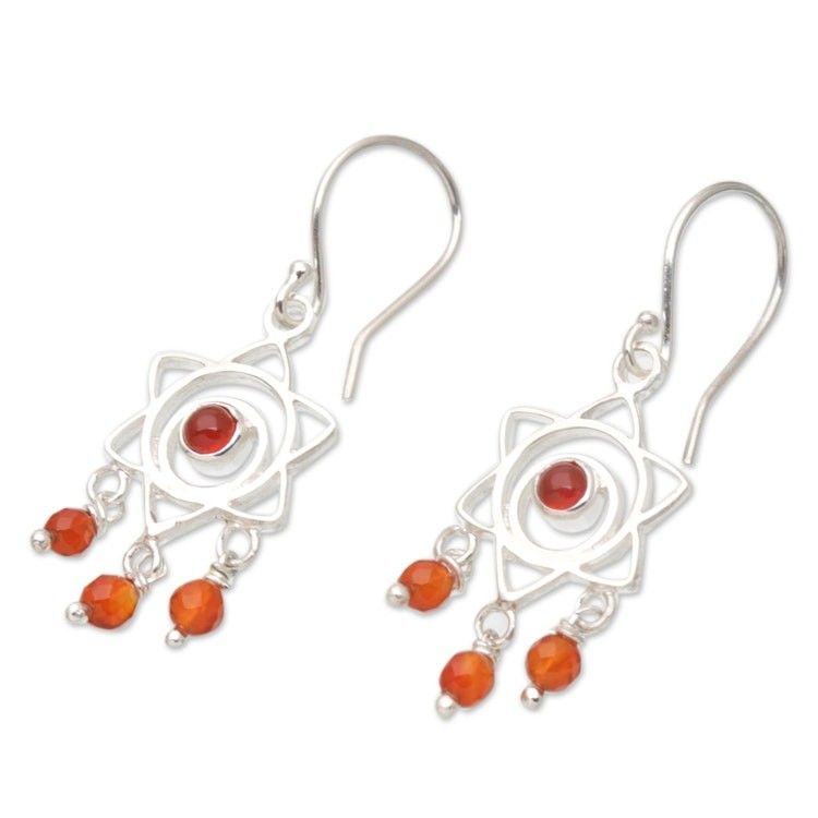 Chakra Themed Sterling Silver and Carnelian Dangle Earrings 'Daybreak Star' Item ID: 2671748850