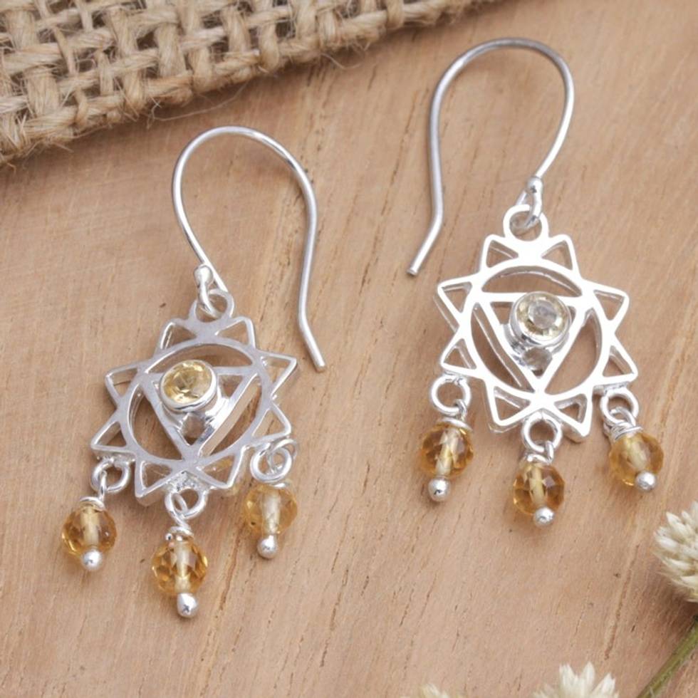 Chakra Themed Sterling Silver and Citrine Dangle Earrings 'Daybreak Sun' Item ID: 2671748483