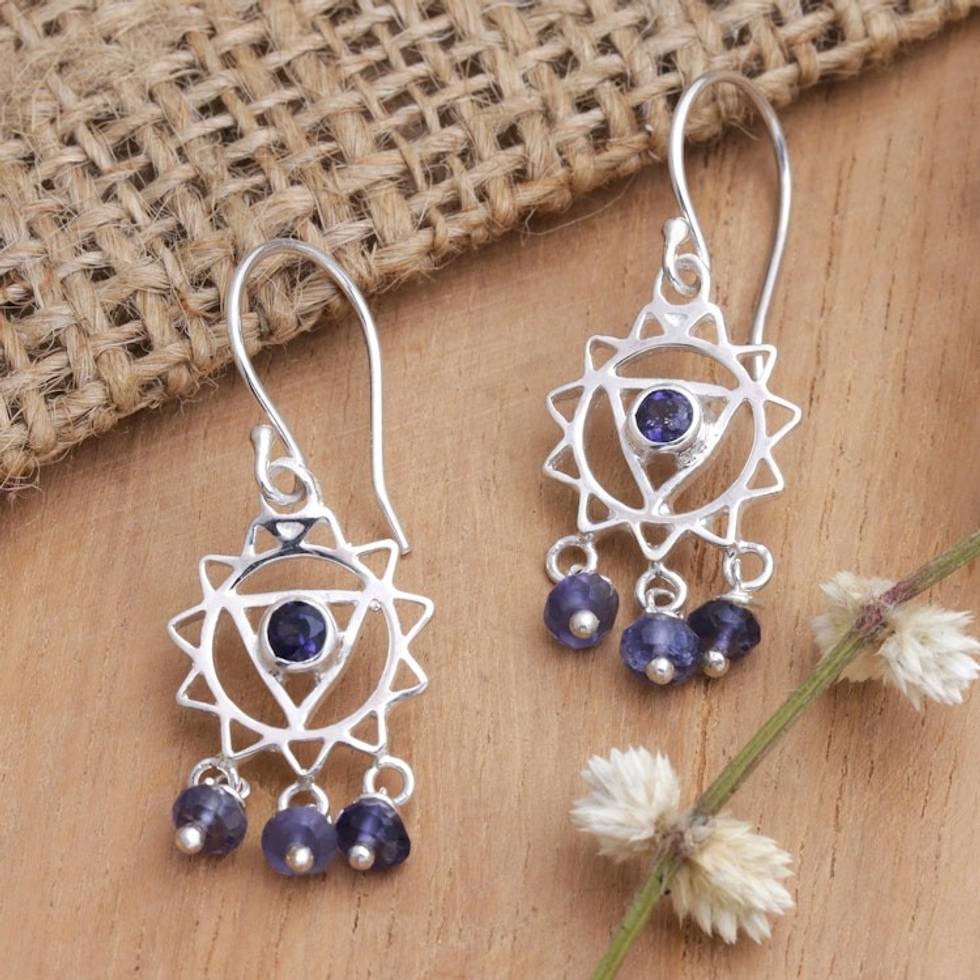 Chakra Themed Sterling Silver and Iolite Dangle Earrings 'Violet Sun' Item ID: 2671748213